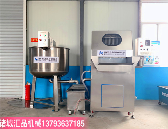 3、鹽水注射機可將鹽水及輔料配制的腌制液注入肉塊中,再通過真空滾揉使料液充分腌漬,滲透,可疏松肌肉組織結(jié)構(gòu),有利于肌球蛋白溶出,并且由于添加劑對原料肉離子強度的增強作用和蛋白等特點的調(diào)整作用,注入配制的水溶液能使肉質(zhì)嫩化、松軟,從而提高了肉制品的出品率和改善肉制品的嫩度和口感。