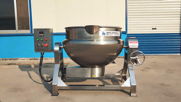 可傾式夾層鍋以一定壓力的蒸汽為熱源(也可選用電加熱),夾層鍋具有受熱面積大、熱效率高、加熱均勻、液料沸騰時(shí)間短、加熱溫度容易控制等特點(diǎn)。