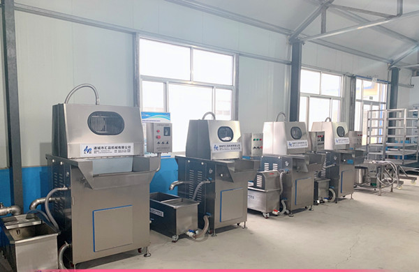 鹽水注射機(jī)自動(dòng)拌料、不沉淀,鹽水注射機(jī)可將鹽水及輔料配制的腌制均勻地注射到肉塊中,既可縮短腌制時(shí)間,又使腌漬劑分布均勻,大大提高了肉制品的品味和出品率。該設(shè)備清洗方便,結(jié)構(gòu)合理,整機(jī)完全采用不銹鋼材料,清潔衛(wèi)生,是肉制品行業(yè)不可缺少的設(shè)備。