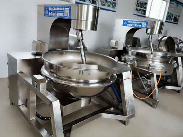 行星攪拌鍋餡料加工專yong設(shè)備,餡料加工比不可少的原料以糖、油、面粉為主,再加其他輔助性的調(diào)料, 因月餅餡料的混合粘稠度較大,普通的攪拌設(shè)備無法進(jìn)行均勻的攪拌,月餅餡料專yong行星攪拌鍋,蒸汽式行星攪拌鍋,采用攪拌系統(tǒng)采用自轉(zhuǎn)公轉(zhuǎn)相結(jié)合的方式,其傳動(dòng)比為不整數(shù)傳動(dòng)比,保證鍋內(nèi)無任意攪拌盲點(diǎn)。使用優(yōu)良的傳動(dòng)與密封結(jié)構(gòu),使傳動(dòng)部分與鍋內(nèi)潔凈、衛(wèi)生。該系列設(shè)備自動(dòng)/液壓型是利用液壓推力使攪拌臂翻轉(zhuǎn),免拆裝攪拌器,再利用液壓推力傾翻鍋體,易于進(jìn)出原料節(jié)省人力,采用無級(jí)變頻調(diào)速器能將高粘度產(chǎn)物混合均勻加熱提高熱量,具有易于操作,工作效率高,耗能低,使用壽命長,結(jié)構(gòu)緊湊,維修方便等特點(diǎn)。