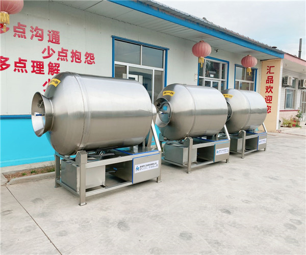 采用水環(huán)真空泵,性能可靠,分離式水箱和泵站,變頻無級(jí)調(diào)速,縮短浸泡時(shí)間,大大提高了工作效率,使調(diào)味更均勻,由于抽真空的作用,味道能很好的滲透進(jìn)肉里,有很好的熟化和調(diào)理作用。 真空滾揉機(jī)
